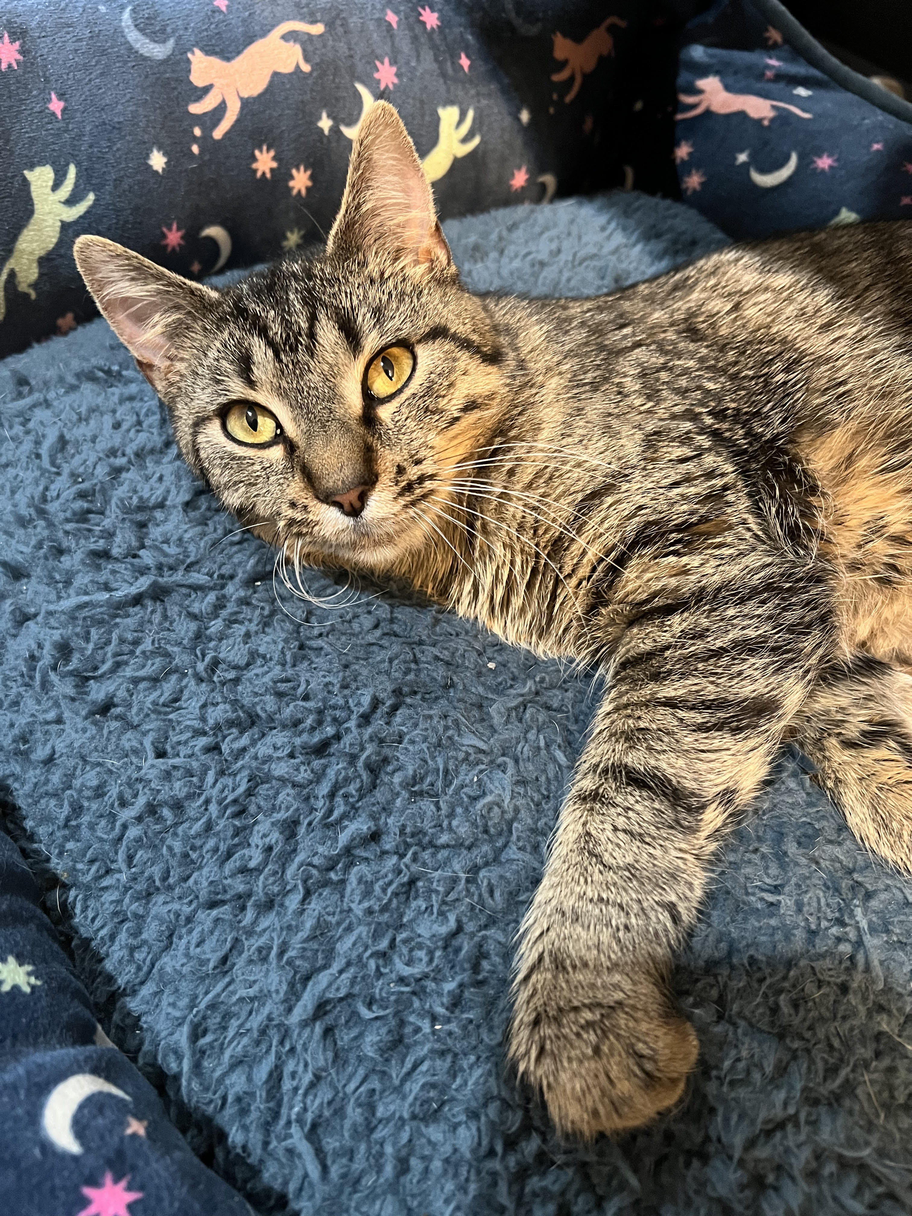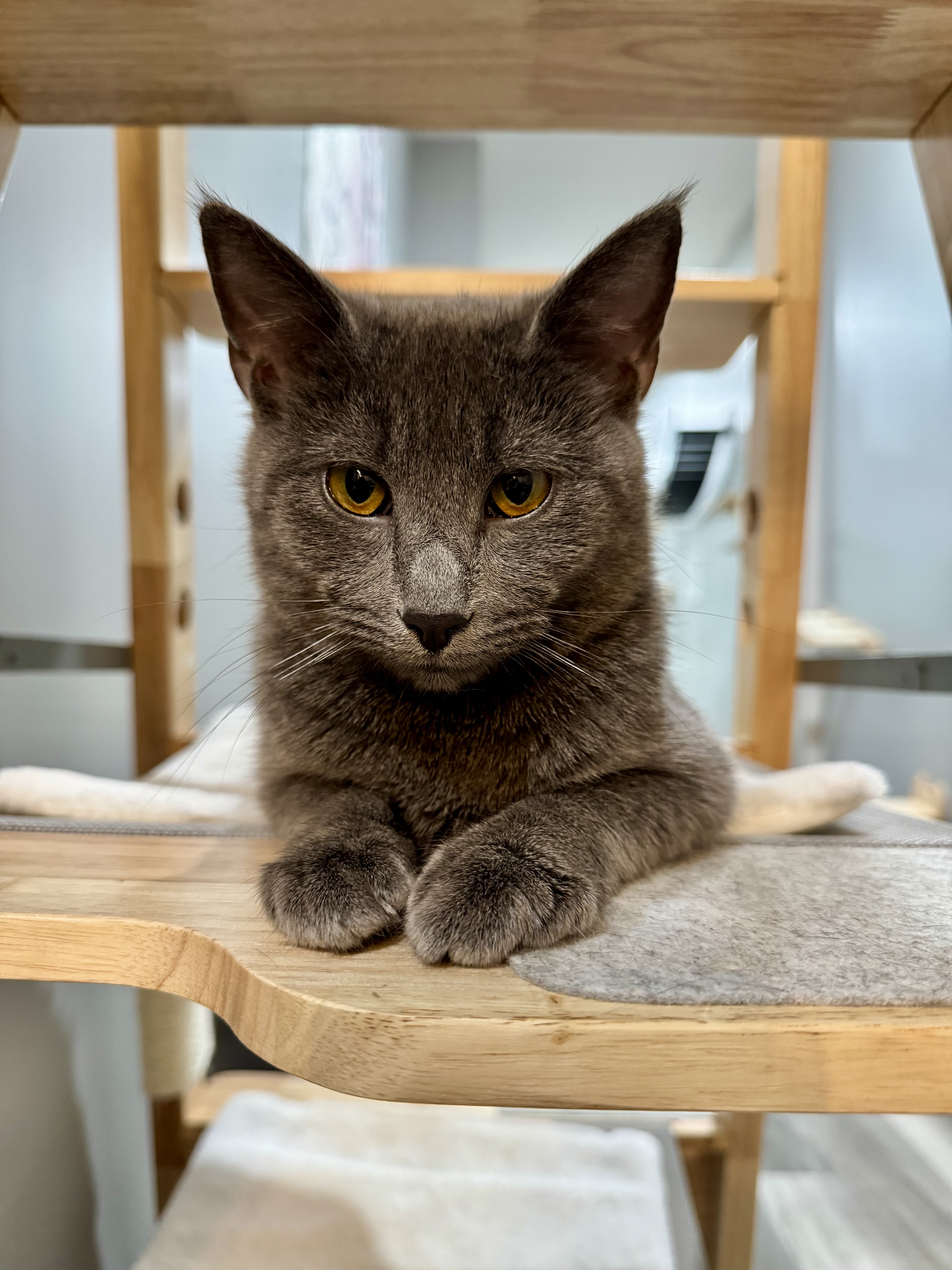 Black Sunshine is the true definition of chill! Brought up by one of our fosters, he's almost aggressively affectionate, and is always eager to insert himself into whatever you're doing, especially if it involves cleaning up around the cafe. He is the undisputed king of purrs! Black Sunshine is closely bonded with Bathsheba, and the two share a special relationship, so they must be adopted together.